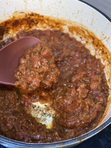 - Add the chopped tomatoes, tomato paste, sugar and water, stir well Reduce heat to medium-low and cook off for 20 minutes stirring occasionally. Reduce the heat if it appears to be sticking