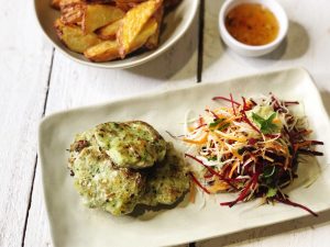 Using wet hands shape the fish mixture into patties and pan fry in a little oil over a medium high heat for about 2.5 minutes each side