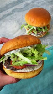 Put another dollop of creamy tzatziki on the top bun, chuck on top and enjoy!